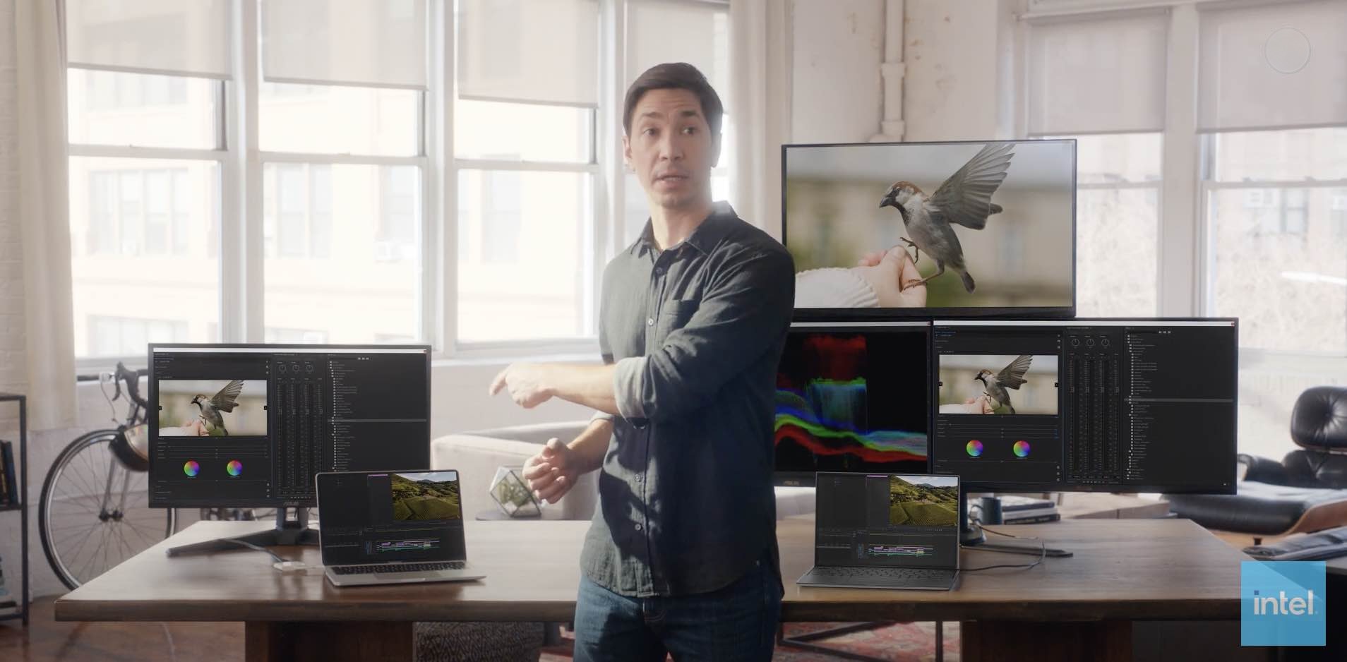 Σε μια αλλαγή ρόλων η Intel παρουσιάζει τον Long να ελέγχει μια σειρά από PCs και χαρακτηριστικά με βάση το τι δεν μπορούν να κάνουν τα νέα Μ1 Macs.