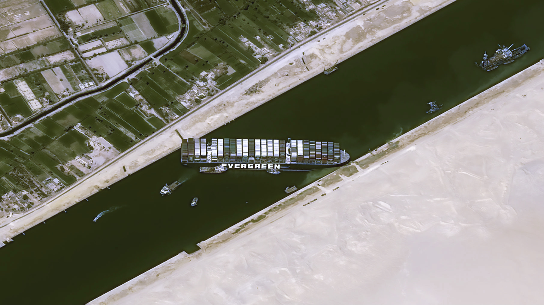 Το 220.000 τόνων και 400 μέτρων μήκους «mega πλοίο» ανήκει στην εταιρία Evergreen Marine Corp. και «κόλλησε» στο νότιο άκρο του καναλιού προκαλώντας τεράστια ουρά με πάνω από 100 πλοία να περιμένουν να ανοίξει η Διώρυγα για να συνεχίσουν το ταξίδι τους.