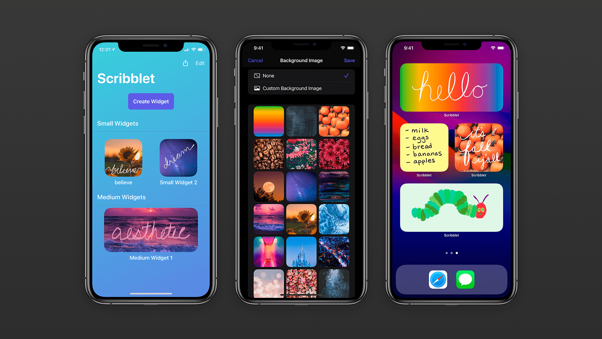 Σε αντίθεση με άλλες εφαρμογές που προσφέρουν συγκεκριμένα widgets το Scribblet σας επιτρέπει να δημιουργήσετε τα δικά σας εντελώς widgets με δικό σας σχεδιασμό, κείμενο και εικόνες. Η εφαρμογή χρησιμοποιεί το PencilKit της Apple και φυσικά δουλεύει άριστα και με το Apple Pencil στο iPad.